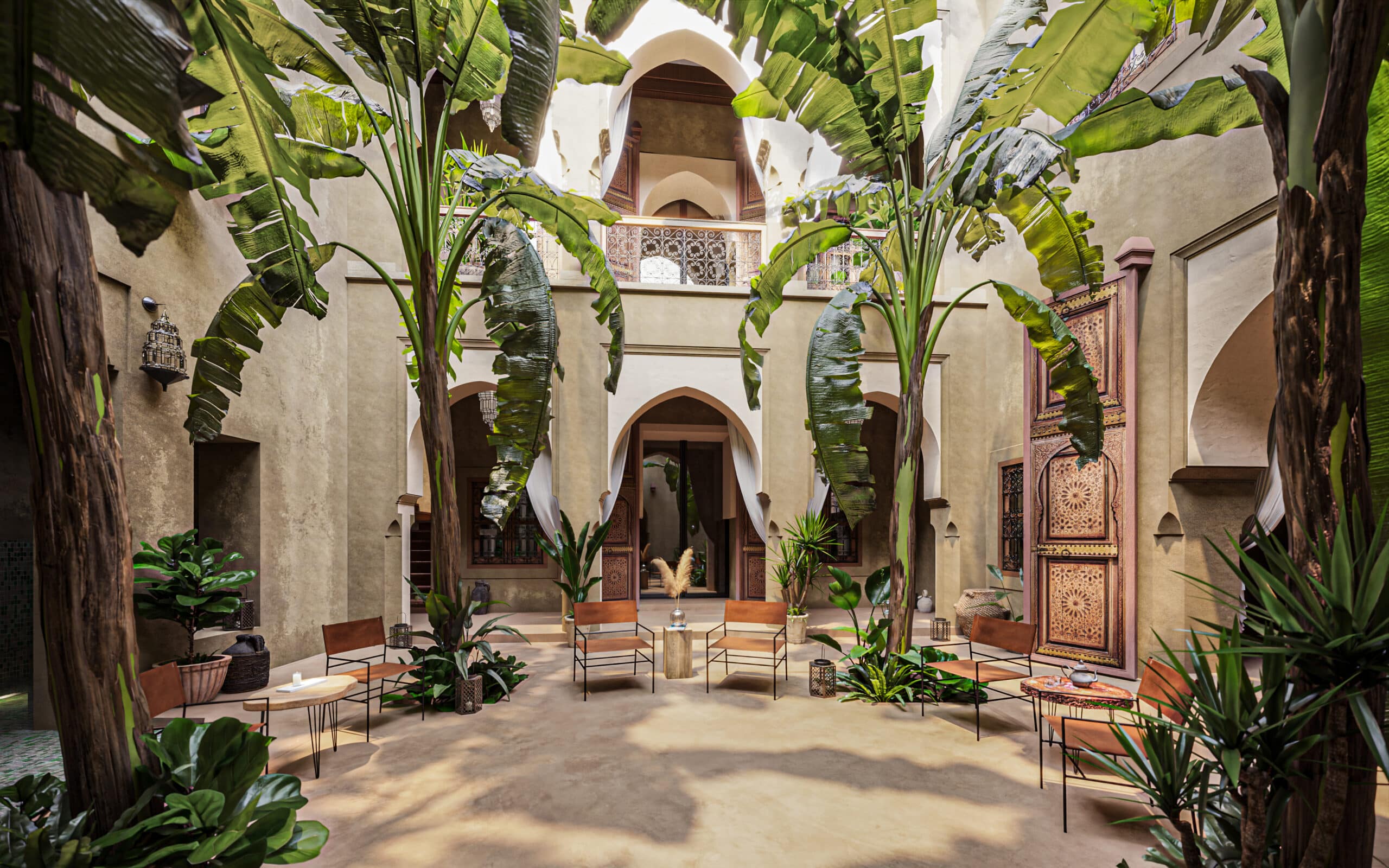 Pensées comme des écrins précieux, chacune révèle un univers distinct : matières naturelles, lumière tamisée, tadelakt, zelliges colorés, plafonds décorés et détails artisanaux s’y conjuguent pour une atmosphère feutrée et apaisante.