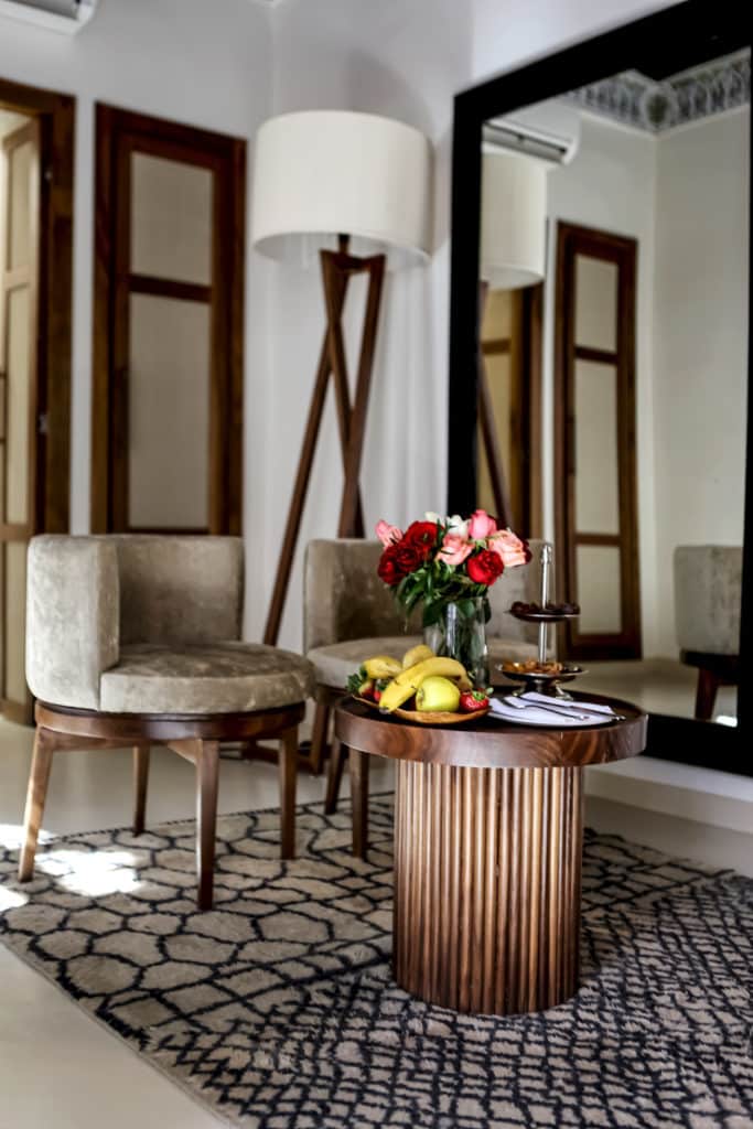 Une suite suspendue entre ciel et terre où chaque détail, du plafond en cèdre, à la décoration en zelliges de la salle de bain raconte une histoire de beauté, de calme et de raffinement.