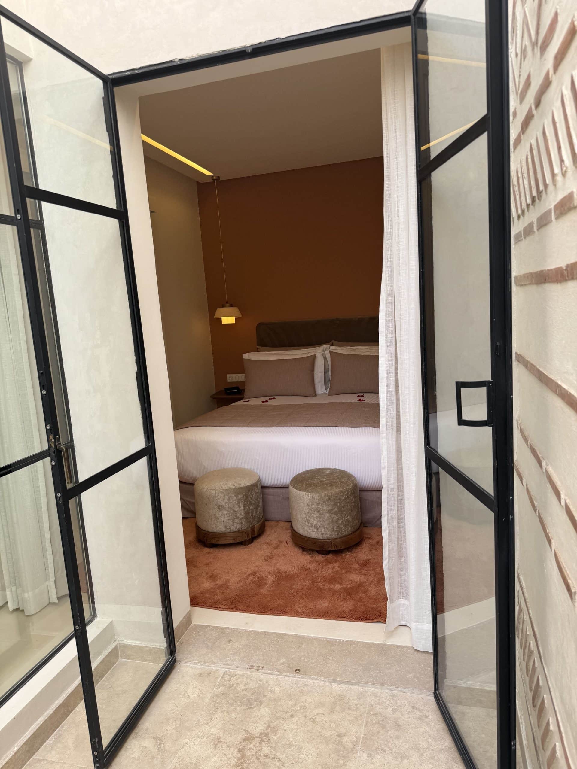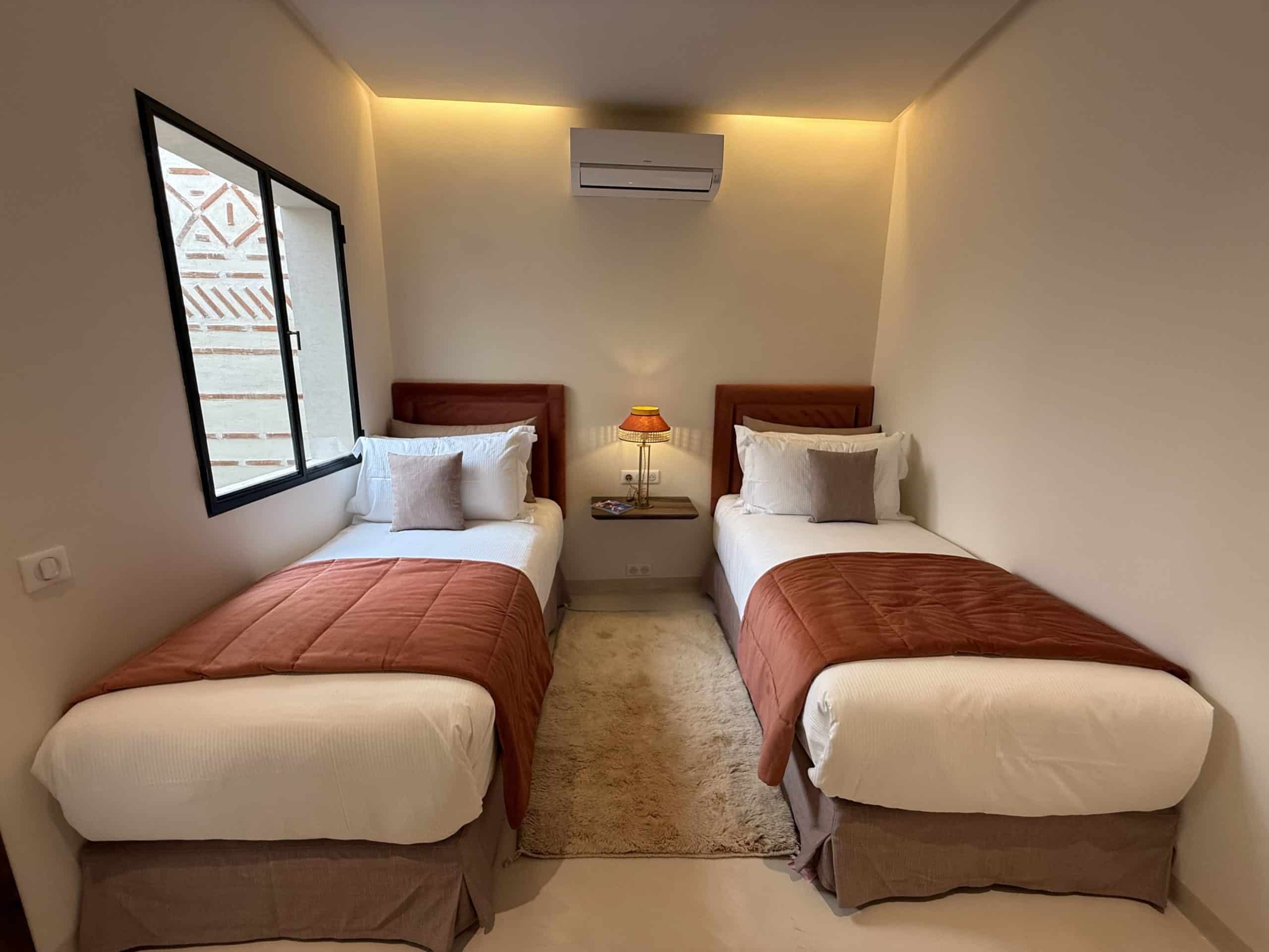 Avec ses teintes chaudes et enveloppantes cette suite élégante de deux chambres, est parfaite pour vivre Marrakech en toute sérénité, entre confort et art de vivre marocain.